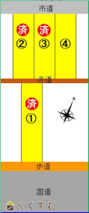 北側・・・長岡市道 幅員6m 、 南側・・・国道 幅員22m