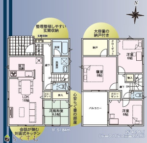 4LDK (和室:4.5畳) (洋室:8、6、6)、LDK16、・納戸あり ・販売図面と現況が相違する場合は現況を優先させて頂きます。