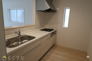 \三和自社分譲地内新築住宅につき仲介手数料半額、特別キャンペーン実施中!/住宅性能表示制度の5分野7項目の最高等級取得!LDK16帖でゆったりとした空間★TVモニターホン、人感センサー玄関灯、防犯カメラがありセキュリティー面も安心!対面式キッチンなので料理しながらご家族との会話も楽しめます♪