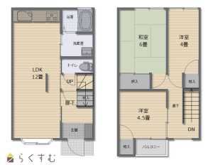 2LDK (和室:6畳) (洋室:4.5、4)、12