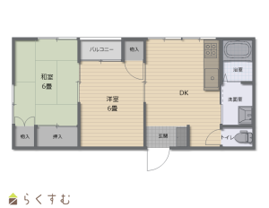 2DK (和室:6畳) (洋室:6)、DK6