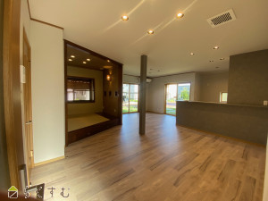 対面キッチン×LDK約20帖で家族とのコミュニケーションの場に♪小上がりスペースはお子様のリビング学習にも使えます♪2階洋室11帖は用途に合わせて分割可能♪