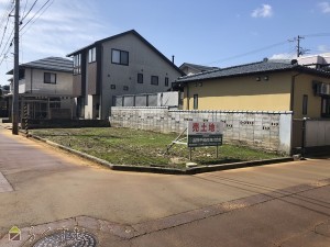 角地、整形地、更地、閑静な住宅街、建築条件なし、所有権、下水道(前面道路)、都市ガス(宅地内)、上水道(宅地内)、前面道路融雪設備あり、住宅向け