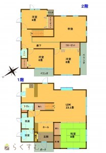 4LDK (和室:8畳) (洋室:8、6、6)、LDK23.1