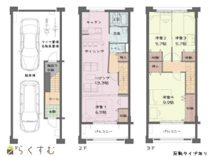 4LDK (洋室:6.5、5.7、5.7、9.9)