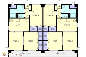 3DK (洋室:6.4、6.0、6.3)