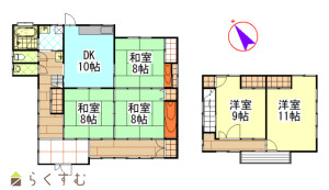 5LDK (和室:8畳、8畳、8畳) (洋室:9、11)、LDK10