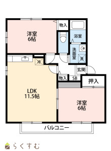 • 間取り 2LDK (洋室:6、6)、LDK11.5