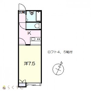1K (洋室:7.5)、ロフト4.5帖