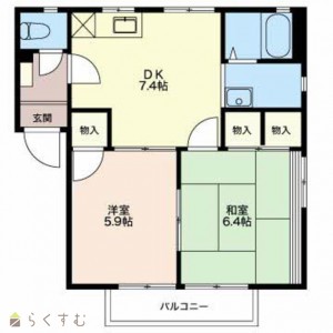 2DK (和室:6.4畳) (洋室:5.9)