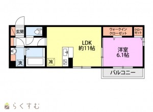 • 間取り 1LDK (洋室:6.1)
