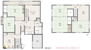 7DK (和室:6畳、6畳、8畳、6畳、6.7畳) (洋室:5.2、6)、DK11.4、車庫(軽自動車1台分)