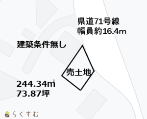 R7年5月価格改定しました! 建築条件無し! 前面道路16.4m! 73.87坪!