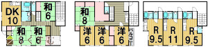 7DK (和室:6.0畳、6.0畳、8.0畳、8.0畳) (洋室:6.0、6.0、6.0)、10DK、3階部分1Kが3部屋あり。(2部屋賃貸中)