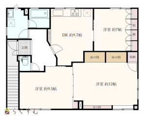 3DK (洋室:7、9.5、12)、DK9.7