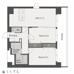 2LDK (洋室:6.1、5.2)、LDK11.7