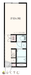 1K (洋室:6.3)、ロフト5.8