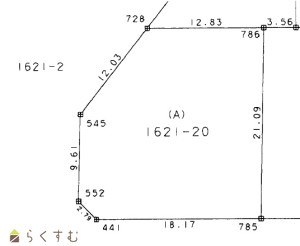 ①1621番2:2610㎡、②1621番21:9.35㎡、③1673番7:102㎡、④1673番10:460㎡、各318305分の6843