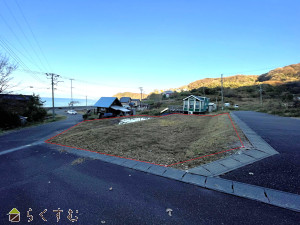 高台に立地、角地、整形地、前道6m以上、更地、建築条件なし、所有権、即引き渡し可、側溝、LPG、上水道(前面道路)、浄化槽、住宅向け、事業用向け、別荘地、田舎暮らし