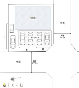 東側:幅員約7.5m、北側:幅員約6.5m