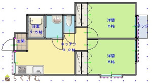 2DK (洋室:6、6)、DK8.25、バルコニー面積:1.65㎡