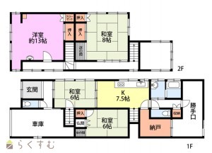 4DK (和室:6畳、6畳、6畳) (洋室:13)