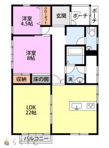 2LDK (和室:4.5畳) (洋室:8)