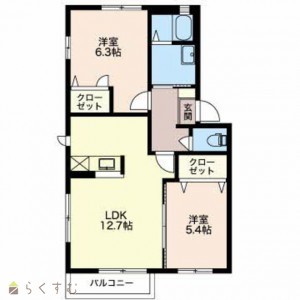 2LDK (洋室:6.3、5.4)