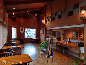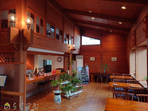 店舗内は木目基調の落ち着いた雰囲気
