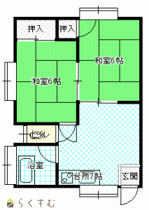 2DK (和室:6畳、6畳)