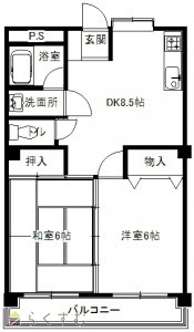2DK (和室:6畳) (洋室:6)、DK8.5
