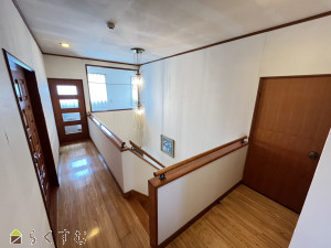 開放感ある2階ホールから、吹抜けを通して玄関へ光が届きます。