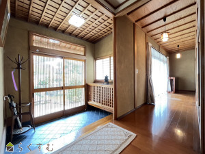 格子戸や木の風合いが美しい、落ち着きある和の玄関。