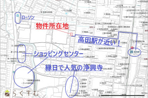 高田駅、バス停も徒歩圏内で移動が楽です。縁日・コンサート等のイベントで人気の名刹浄興寺は散歩に最適です。