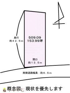 間口 13.5m × 奥行 42.5m
