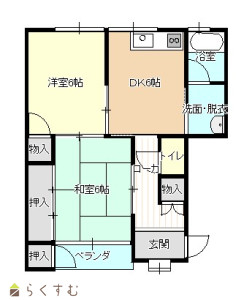 2DK (和室:6畳) (洋室:6)、DK6