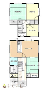 4LDK (和室:8畳、6畳) (洋室:6、4.5)、LDK14
