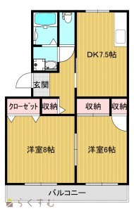 2DK (洋室:8、6)、DK7.5