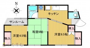 3DK (和室:6畳) (洋室:6、4.5)、DK4.5