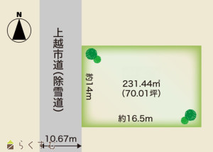 【売土地】約70坪広々とした整形地!小学校まで約2分と通学しやすい立地です。国道8号線・上越ICへのアクセスも良好!