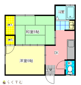 2DK (和室:6畳) (洋室:6)、DK5.7