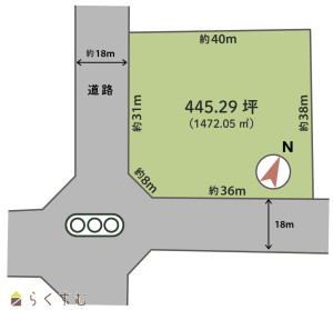 南西角地の広い敷地(445坪)、幅員18mの県道に面し、幅広い用途で活用が可能です