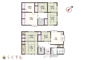 8DK (和室:8畳、6畳、4.5畳、6畳、4.5畳、4.5畳) (洋室:8、4.5)、DK8