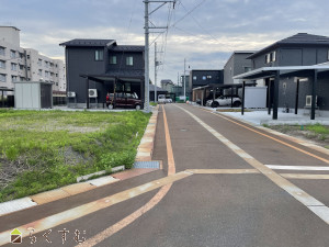 角地、前道6m以上、更地、学校近く、閑静な住宅街、所有権、即引き渡し可、側溝、都市ガス(前面道路)、上水道(前面道路)、下水道(前面道路)、電気、都市ガス(宅地内)、上水道(宅地内)、下水道(宅地内)、前面道路融雪設備あり、住宅向け
