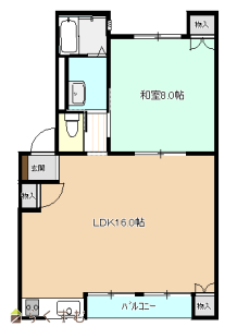 1LDK (和室:6.0畳)、LDK16.0