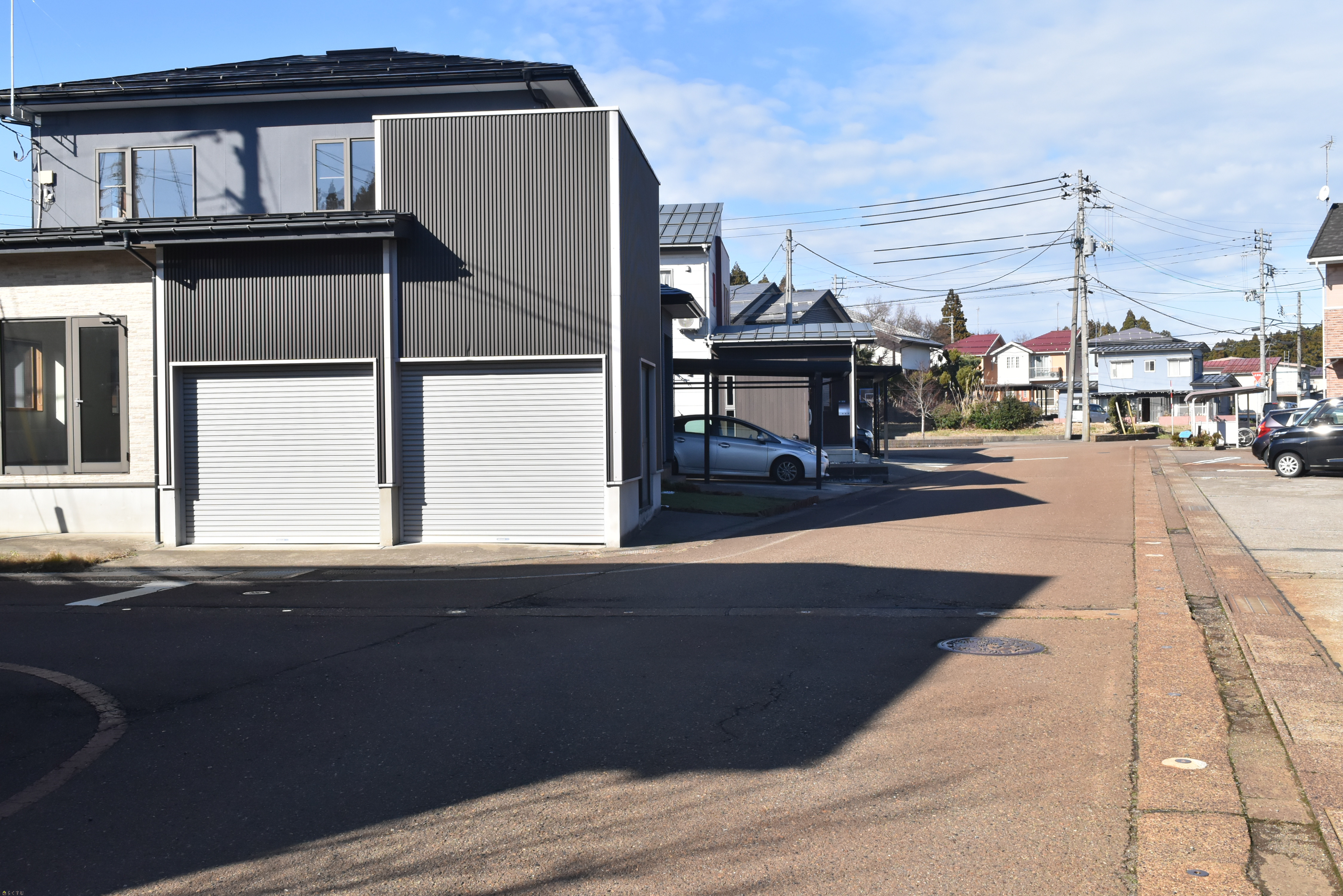 前面道路は幅6.5mで、消雪パイプ付きなので冬も安心です。