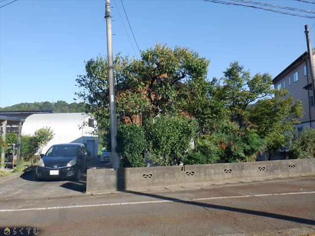 全景(樹木、居宅、鉄骨倉庫)