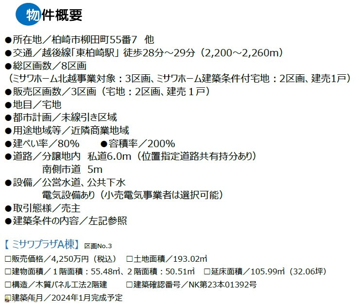 ≪ミサワホームの分譲地≫ 柏崎市柳田町 区画No.2 詳細