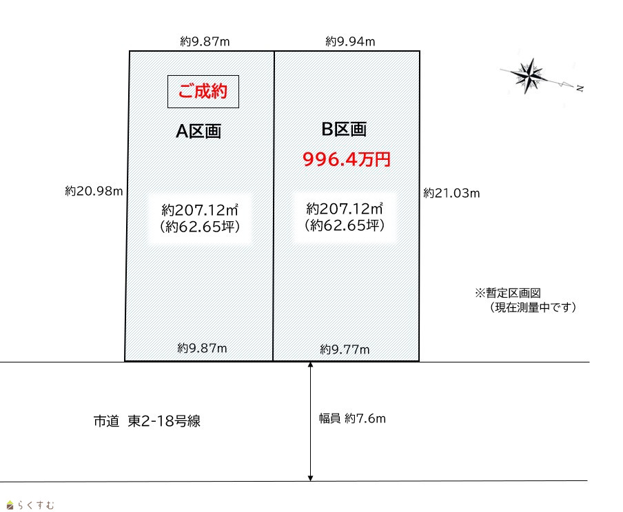 暫定区画図。既存建物を解体後、測量してお引渡しとなります。
