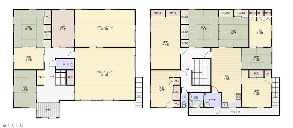 各階キッチン・トイレ、1階に20帖と28帖のフリースペース有